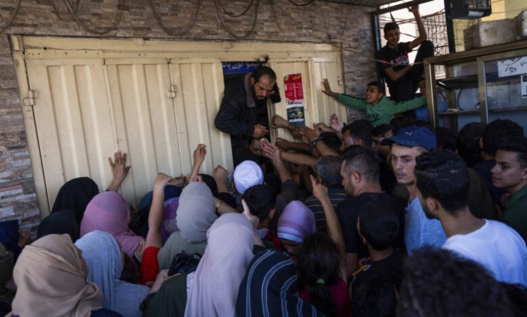 Largas filas para conseguir pan, agua sucia y los bombardeos no cesan en la destrozada Gaza Se alcanzan a escuchar…