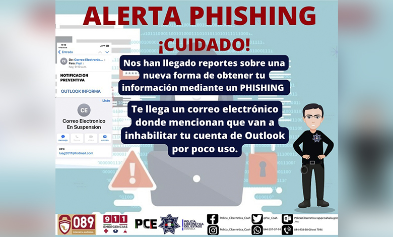 La Policía Cibernética de Coahuila, de la Secretaría de Seguridad Pública (SSP), alertó sobre un nuevo método que utilizan los delincuentes para cometer fraude a través de mensajes de phishing, es decir, que electrónicamente se puede acceder a distancia a la información de los celulares o computadoras de terceros para robar datos personales.